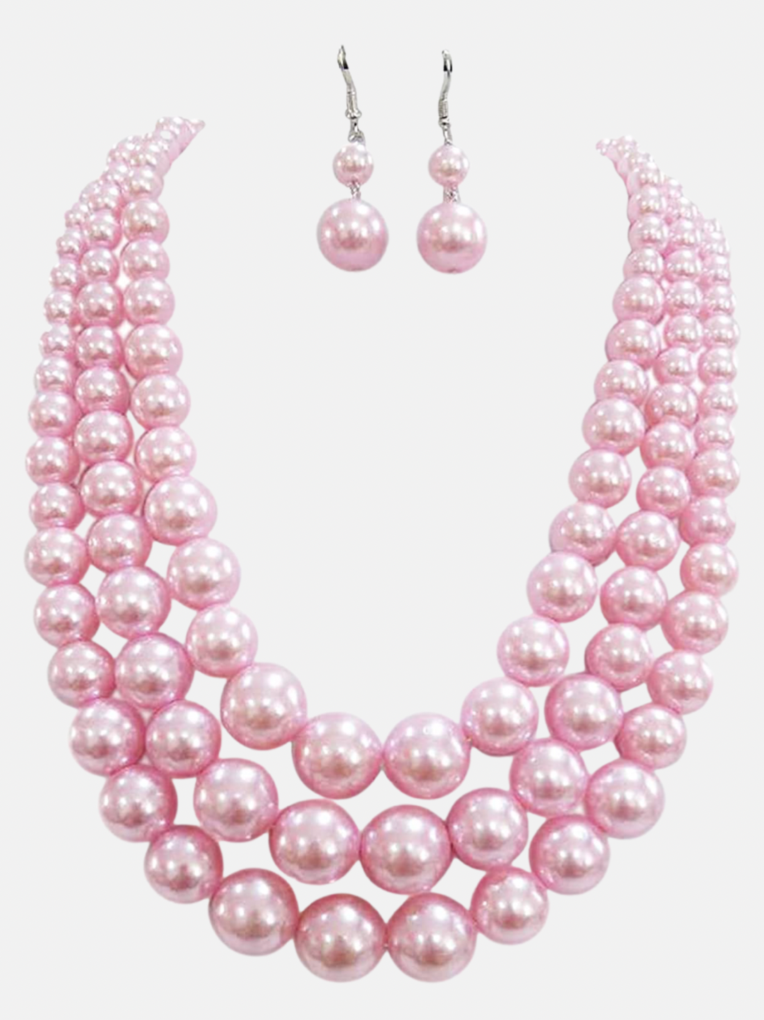 3 Strand Pearl Set-Baby Pink